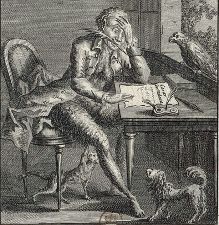 Cesar de Malaca, écrivant aux Animaux de son espèce 1781. (BnF)