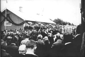 Turku-Uusikaupunki rautatien vihkiäiset Uudenkaupungin rautatieasemalla 30.5.1925. Kuva: Uudenkaupungin museo.