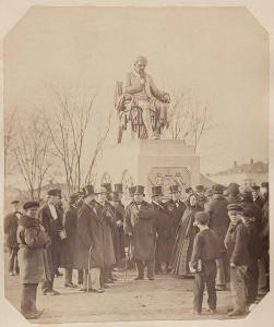 Henrik Gabriel Porthanin (8.11.1739-16.3.1804) syntymän muistojuhla Porthanin patsaalla 8.11.1864. Patsas oli paljastettu saman vuoden syyskuussa. Kuva: J. Reinberg (kuvaaja), Turun museokeskus.