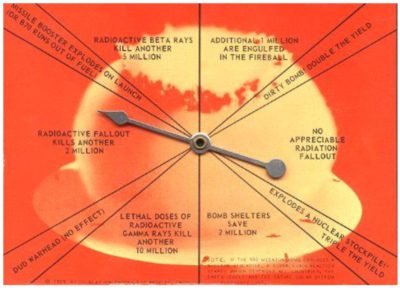 Sattumageneraattori korttipelissä Nuclear War vuodelta 1965. Nuolta pyörittämällä saatiin aikaan sattumanvaraisia tapahtumia.